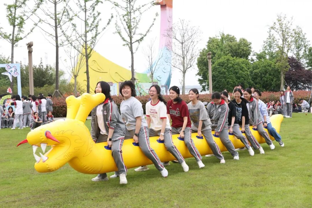 趣享运动,乐展风采。口号震天,数条龙舟如离弦之箭冲向终点。队员们咬紧牙关、步伐整齐。观众嘶声呐喊“加油”。终点线前,多支队伍并驾齐驱,胜负只在毫厘之间——这不仅是速度的较量,更是协作的终极考验。春风见证拼搏,奖状致敬汗水。当学工处主任鄢先进宣布获奖班级时,台下响起经久不息的掌声。激昂的音乐响起,获奖代表昂首阔步登上领奖台。奖状高举的瞬间,汗水与笑容交织成最耀眼的光芒。