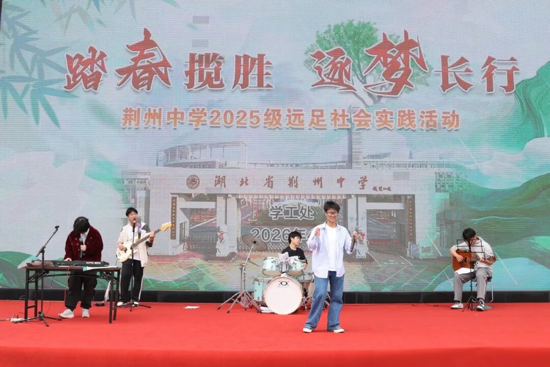 2026年4月16日,荆州中学2025级一千多名师生踏着春光,以“踏春揽胜 逐梦长行”为主题,开展了一场全程约20公里的春季远足社会实践活动。这不仅是一次与自然的亲密接触,更是一堂行走在天地间的“大思政课”。党委书记朱胜祥出席出征仪式,党委副书记、校长刘军,党委委员、副校长游建军,学工处、团委相关人员,2025级全体班主任及全体高一学生、部分教师参加活动。出征仪式由团委副书记李晗主持。